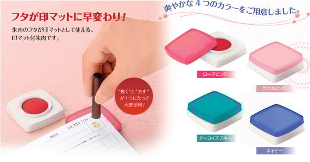 ○朱肉のフタの印マットで、いつでもキレイにハンコがおせます。