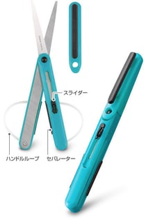 ペンのような形に畳んで、筆箱の中にも収納できるコンパクトなハサミですが、持ち手の部分もループが出てきてちゃんとしているし、右利きの方も左利きの方も使える構造になっていて、切れ味もしっかり切れます。