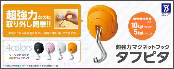 5㎏、10㎏の重さに耐えられる超強力マグネットでありながら、取り外しは簡単。