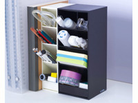 どちらも縦置き横置きどちらでも使える収納スタンドで、ペンやハサミなど机周りで使いそうなものを取り出しやすく収納できるようになっています。