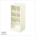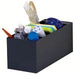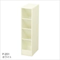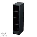 幅が広い上2段には縦の仕切りが付いているのでペンやハサミ等の細いものを、下2段には75×75mmの付箋が収納できるワイドスペース。
