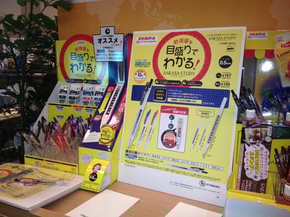 ゼブラのサラサラ書けるジェルタイプボールペン『サラサ』に受験生向けの目盛付きタイプ『サラサスタディ』が10月12日に発売されるということで、こちらが大々的に紹介されていました。